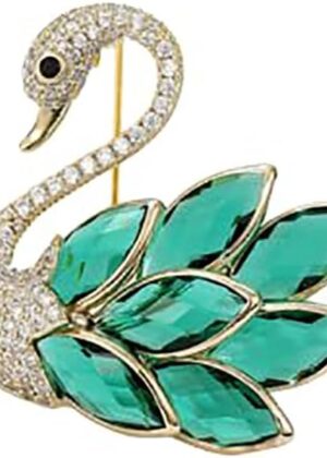 14K Gold Swan Brooch – Elegant Moissanite-Encrusted Coat Pin for Women, Ideal for Evening Wear and Special Events, Luxurious Jewelry Gift, Animal Design Accessory