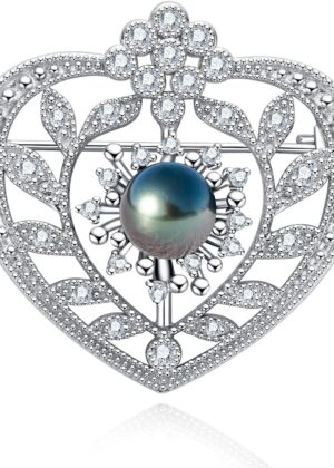 9-10MM Tahitian Black Pearl with Moissanite Heart Brooch Pin/Pendant, Handselected Black Pearls, D Color Moissanite, Sterling Silver, 2 in 1 Mulpurpose, A Variety of Ways to Wear