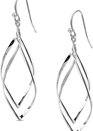 925 Sterling Silver Double Twisted Infinity Dangle Earrings for Women | Linear Marquise Loops Classic Infinity Drop Dangle Earrings