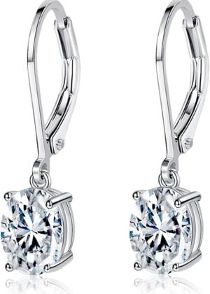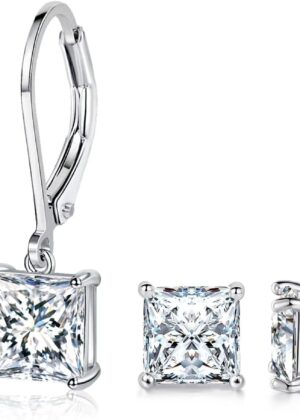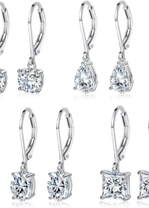 18K White Gold Plated Round Princess Cut Clear Cubic Zirconia Tear Drop Dangle Earrings for Women Hypoallergenic