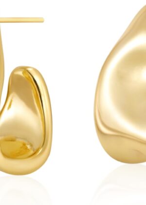 14K Gold Plated 925 Sterling Silver Post Teardrop Chunky Hoop Earrings | Lightweight Drop Earrings for Women | Designer Dupe Earrings