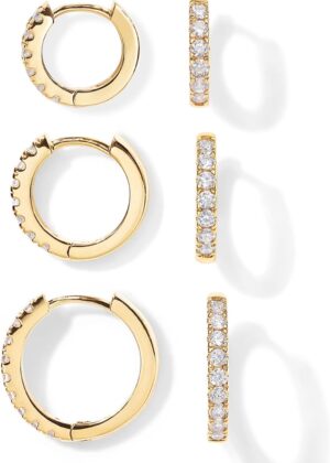 18K Gold Plated 925 Sterling Silver Post, 3 Pairs Small Gold Hoop Earrings Set | Mini Cartilage Helix Hoop Pack for Women Men 8mm 10mm 12mm