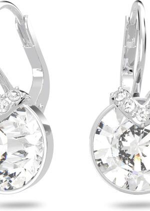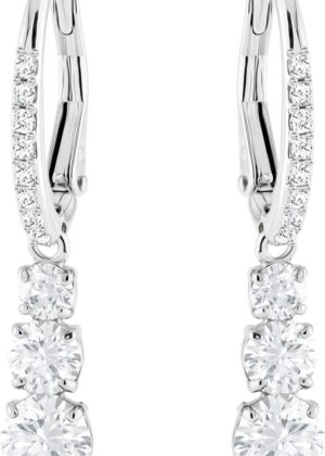 Drop Pierced Earrings with White Crystals on a Rhodium Plated Setting with Hinged Closure