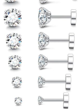 20G Hypoallergenic Flat Back Earrings for Women Men Silver 14K Gold Stainless Steel Stud Earrings Cubic Zirconia Studs Surgical Steel Cartilage Earrings for Sensitive Ears
