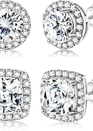 18K Gold Plated Halo Stud Earrings 925 Sterling Silver Cubic Zirconia Stud Earrings Round Square Stud Earrings Set for Women Men