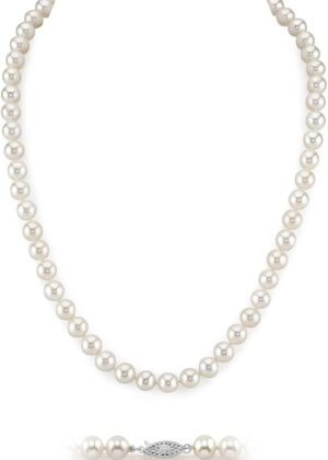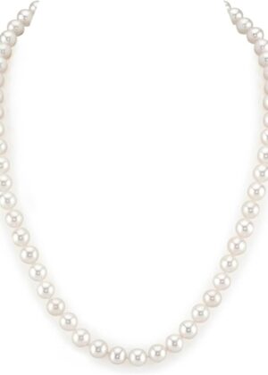 Real Pearl Necklace for Women with AAA+ Quality Round White Freshwater Genuine Cultured Pearls | 14K Gold Clasp White Gold Pearl Gifts for Christmas, Holidays and Anniversary
