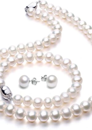 Freshwater Cultured Pearl Necklace Set Includes Stunning Bracelet and Stud Earrings Jewelry for Women