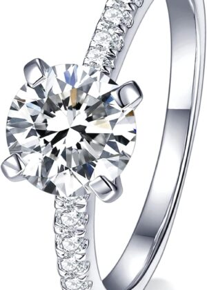 Solitaire Moissanite Engagement Ring, 1CT D Color Clarity, 925 Sterling Silver with 18K White Gold Plated, Ideal Gift for Women
