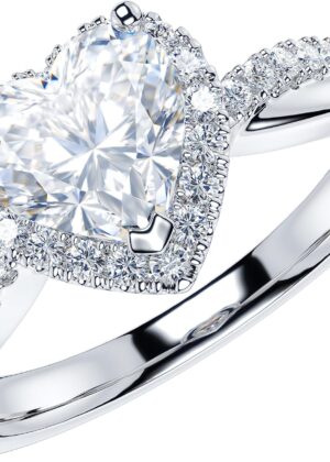 Sterling Silver Heart-shaped Genuine Moissanite Halo Engagement Ring Promise Ring