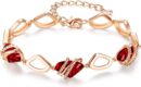 - Bracelet charms each measures 0.5″ x 0.5″; Lobser claw clasp; Chain length is 7″ +2″ extender; Galatic crystal, ruby red; Flatback zirconia rhinestones, crystal AB color; Rhodium plating